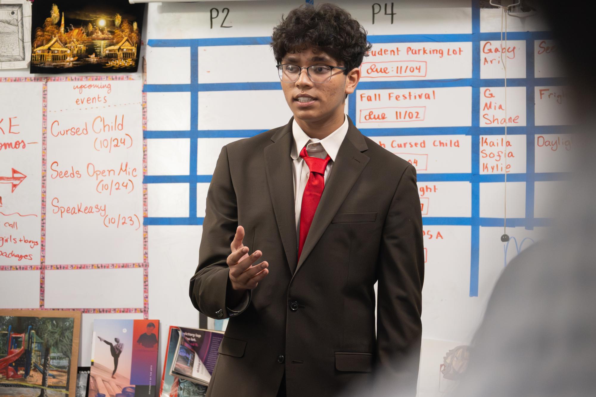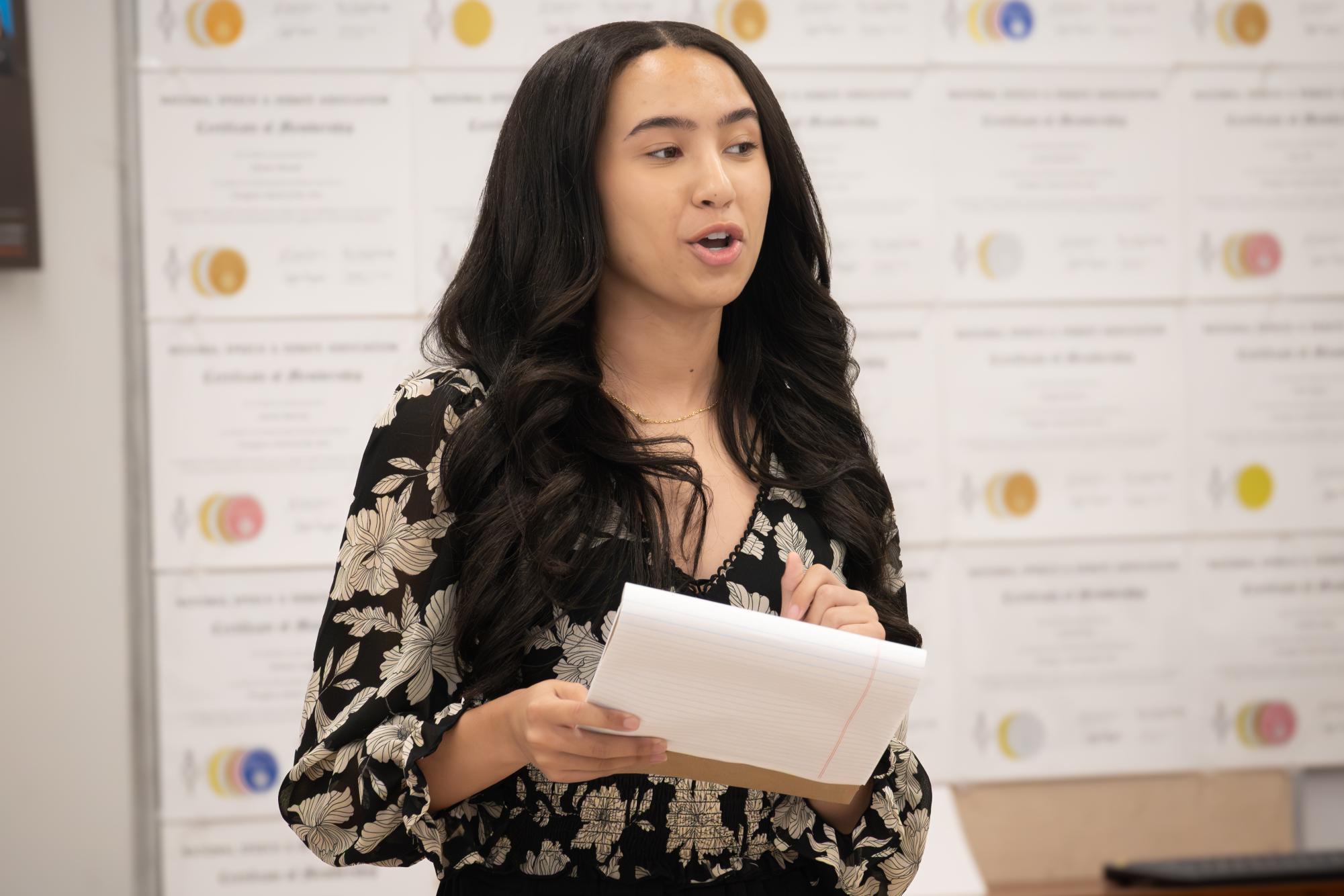 Presenting a deliberation over a bill concerning tuition costs for public universities, communications sophomore Grayson Murray responds to examination refuting his argument. “Speakeasy gives us (debate students) a great platform to showcase to our parents how Congress can be light-hearted and how our team is a community,” Murray said.